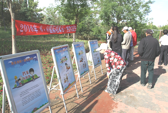 6月6日,阿拉善盟档案史志局联合阿拉善通勤机场、中国人民银行阿拉善分行,在盟府所在地巴彦浩特镇新区盟委旧址公园, 围绕“档案与民生”宣传主题,以“民生档案  服务民生”为中心内容,开展了“6•9”国际档案日宣传活动。 宣传活动内容丰富,形式新颖。一是三家单位联合宣传,各自承担宣传内容,即节约了成本,又博采众长,编微信、挂横幅、摆展板、发宣传册、身披绶带,踊跃讲解,使宣传现场生动而吸引人群;二是以民生为主题,免费发放《在神秘的阿拉善》《阿拉善婚礼》《内蒙古纪事》等图书,让更多的百姓了解阿拉善、了解档案;三是采用微信点赞进行宣传,图文并茂的微信宣传相册把阿拉善盟各级档案馆的面貌与馆藏展显于百姓,对获得点赞多者奖励了阿拉善盟档案史志局编辑出版的志书和编研成果;四是参与宣传的阿拉善通勤机场和中国人民银行阿拉善分行的工作人员参观了阿盟档案馆库房、资料库、书画展,本土作品展、党史馆、方志馆等。 此次宣传活动,共接待实地参观者近500人(次),发放宣传资料、图书、光盘300份,微信转发及点赞1000人次,宣传活动取得较好的效果。 |  |  |