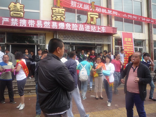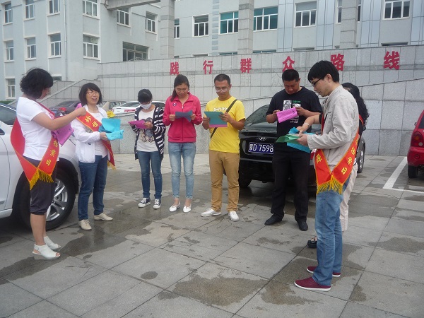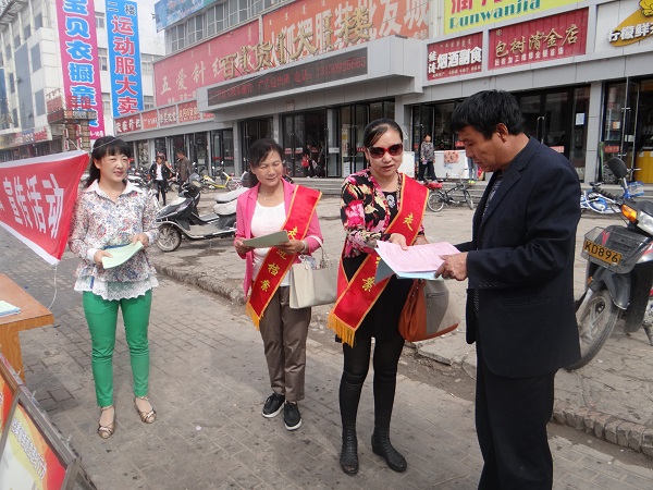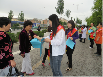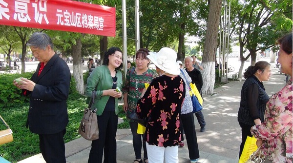 图为赤峰市松山区档案局馆人同向群众发放宣传资料