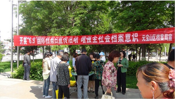国际档案日当天,赤峰市各旗县区档案局馆通过繁华街道设咨询台,挂宣传条幅,布设展板,深入社区散发档案宣传单,发放档案宣传扑克牌及手提袋等方式开展宣传。巴林右旗与广播局录制了档案文化品牌建设成果的档案专题宣传片,并举办名人档案资料征集活动。克什克腾旗在活动现场播放档案法律法规音像资料,并在街道中心电子显屏连续滚动播放。松山区在《松山时讯》开辟专栏,宣传《内蒙古自治区档案行政处罚自由裁量权执行标准》等相关内容。敖汉旗举办了题为“人类与档案同在、社会与档案同行、文明与档案同兴”的宣传活动,接受群众咨询百余人次。林西县通过腾讯、微信等网络方式进行宣传,并举办“走进档案”征文活动。
