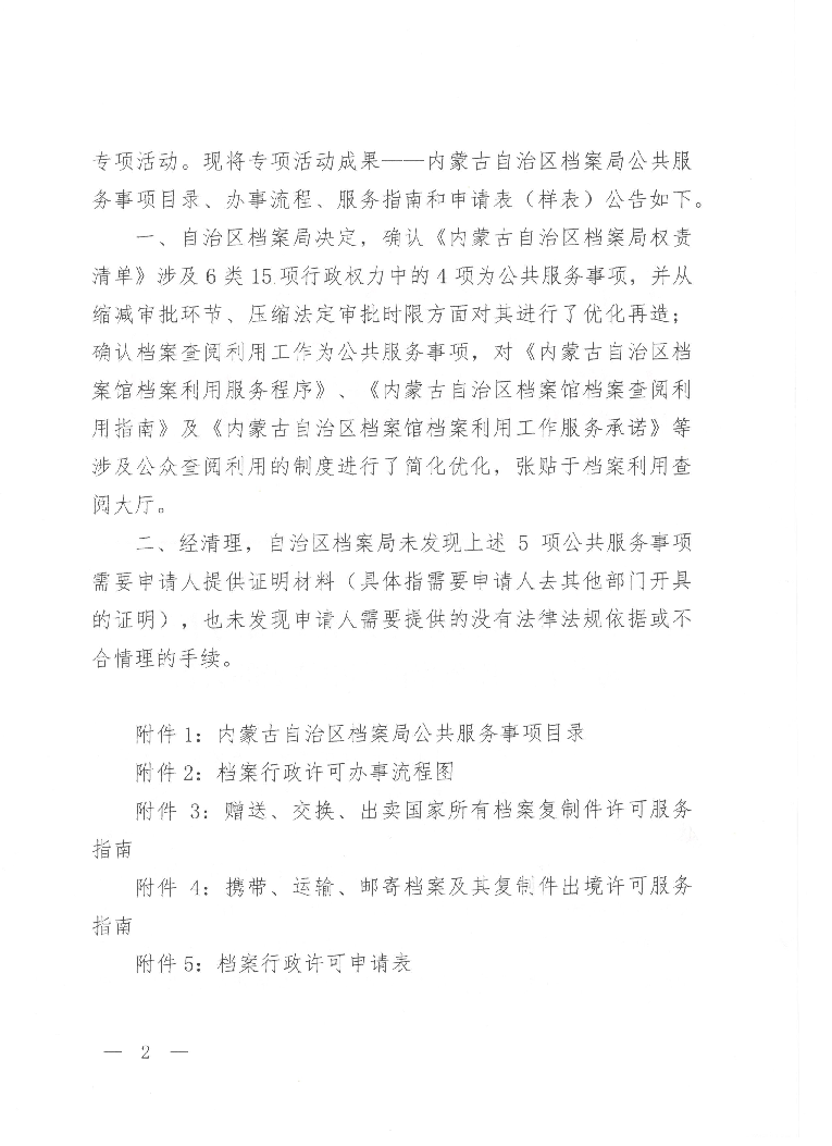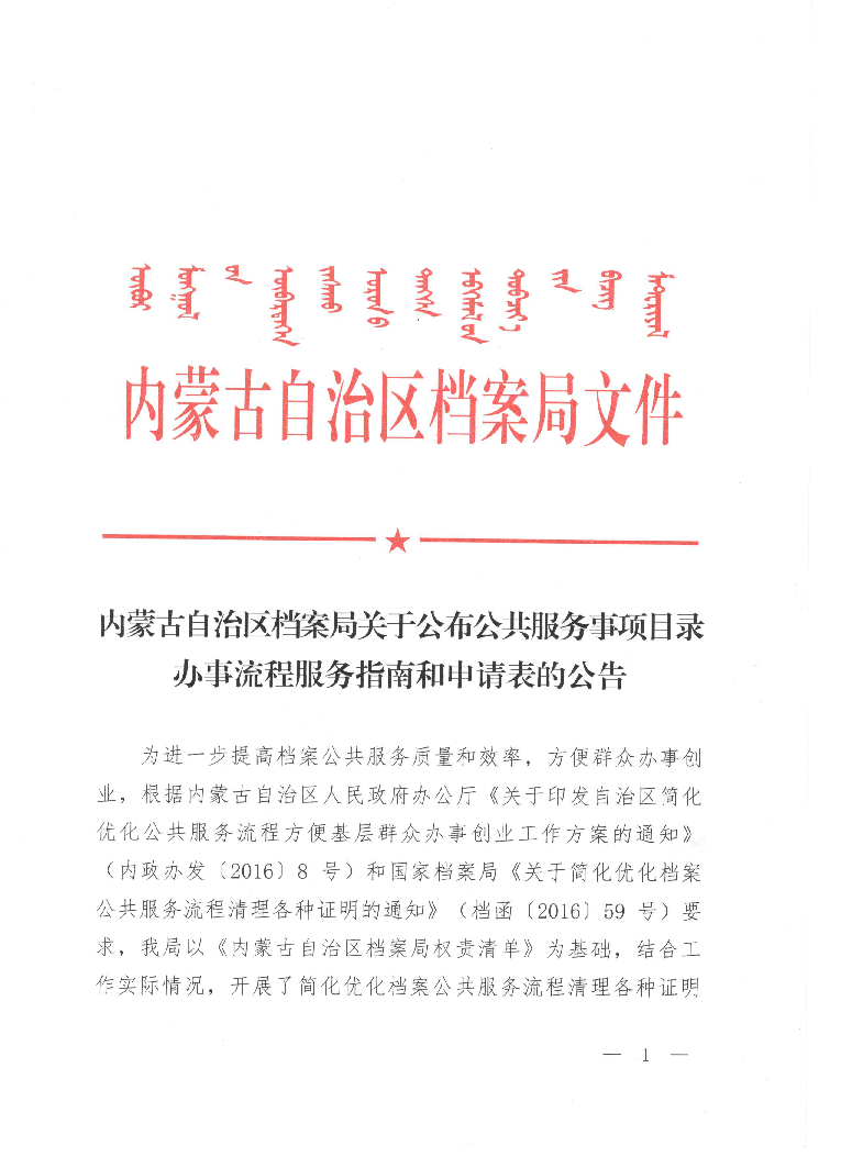 内蒙古自治区档案局关于公布公共服务事项目录办事流程服务指南和申请表的公告